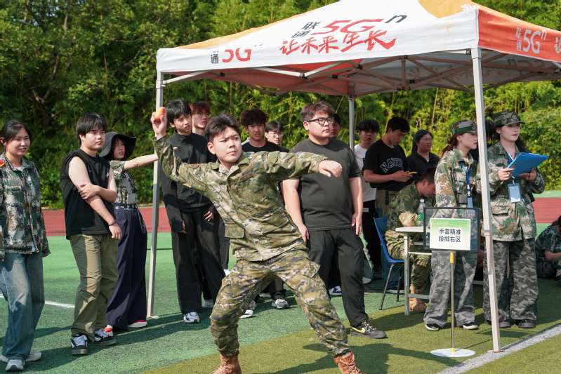 本次竞赛设置定向越野、拔河2个团体赛项与快速应用射击、手雷精准投掷2个个人赛项,融合战场救护、分组战术行动、轻武器射击等军事训练核心科目,全面考验选手体能、技能与团队协作能力。在定向越野赛场,队员们手持地图穿梭于“战场”,精准识别地标、规划路线,在奔跑中展现敏捷思维与体能耐力;拔河比赛现场,各队紧握长绳、齐喊口号,以“力拔山兮气盖世”的气势诠释团结就是力量;快速应用射击环节,选手屏息凝神、据枪瞄准,“三点一线”间尽显专注与沉稳;手雷精准投掷区,一道道抛物线划破长空,力量与技巧的结合赢得阵阵喝彩。
