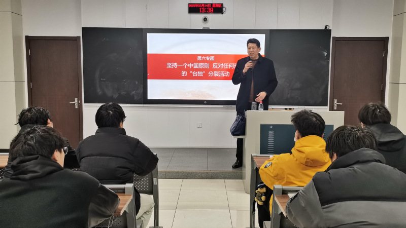 3月14日,党委委员、宣传部部长季华为2024级机电一体化和智能控制专业学生带来了一场以“坚持一个中国原则 反对任何形式的‘台独’分裂活动”为主题的思政课。季华围绕坚持一个中国原则、坚决反对任何形式的“台独”分裂活动、继续全面贯彻实施新时代党解决台湾问题的总体方略三个方面,强调中国式现代化是两岸同胞共同的事业,决定两岸关系走向的关键因素是祖国大陆发展进步,广大青年要坚定理想信念,增强责任感和使命感,以实际行动为推动两岸关系和平发展、实现祖国完全统一贡献力量。