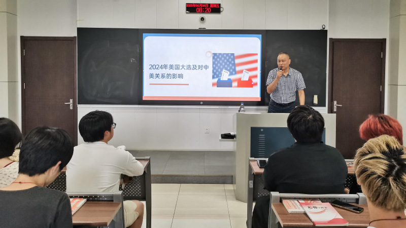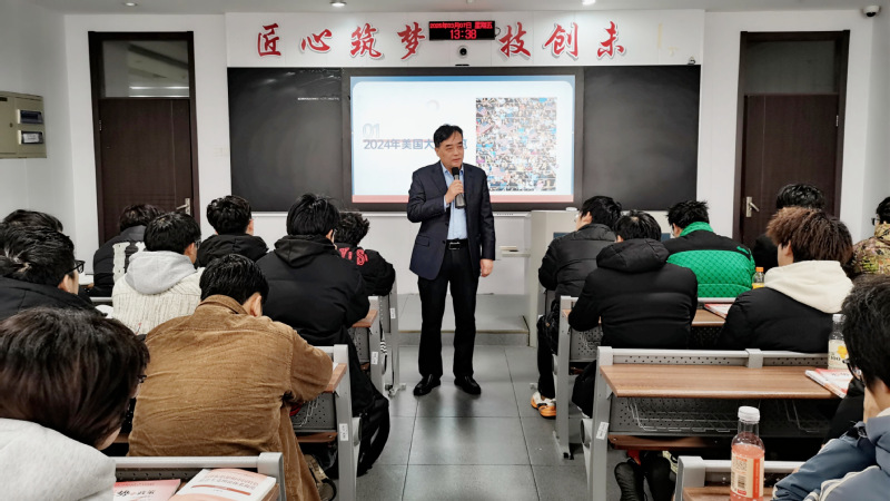 6月6日,党委副书记毛伯民为2024级工业机器人专业学生带来了一堂以“2024年美国大选及对中美关系的影响”为主题的思政课。毛伯民从美国总统选举制度设计及其政治影响、美国两党对华政策的共识与分歧、中美关系的动态平衡与全球治理新趋势三个层面,强调中国始终以战略定力应对变局,坚持和平发展道路,勉励青年学生透过制度表象分析利益本质,用战略眼光看清大势、历史眼光读懂变迁、辩证眼光把握机遇,增强对国家外交方略的认同,坚定在民族复兴征程中贡献青春智慧的决心。