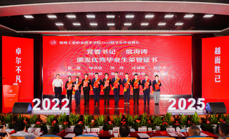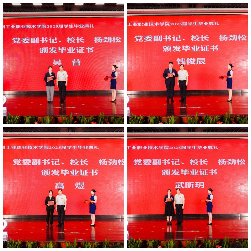校长杨劲松为毕业生代表颁发毕业证书,并以《云路发轫骋怀天地经纬,鸿途肇兴躬行赤子丹心》为题给全体2025届毕业生上了最后一堂思政课。他寄语全体毕业生要立鸿鹄志,激扬“愿以此身长报国”的青春力量;要担时代责,绽放“关关难过关关过”的青春风采;要谱奉献曲,厚植“且将岁月赠山河”的青春情怀。他强调,人生最浪漫的事莫过于“祖国需要时,你们正青春”,希望全体毕业生带着“精技立身”的坚定抱负,迈向更加壮阔的天地,将朝气与热忱化作逐梦力量,书写下属于常工业学子的辉煌答卷。