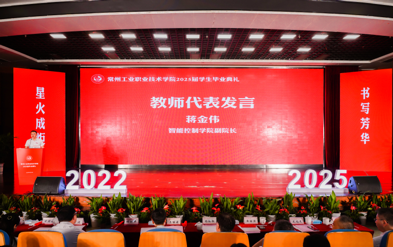 智能控制学院蒋金伟老师作为教师代表深情寄语毕业生。他希望毕业生永葆对专业的热爱之心,以“苟日新,日日新”的姿态,紧跟时代发展的步伐,在技术浪潮中勇立潮头,以向阳而生的姿态,在人生的舞台上绽放璀璨光芒。