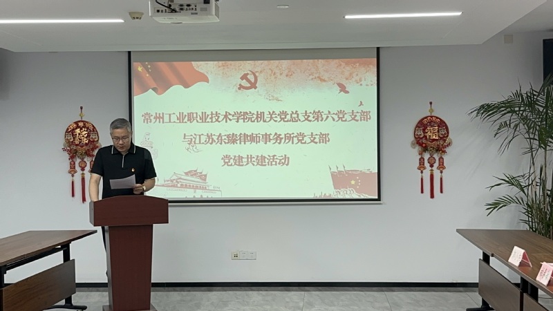 会上,江苏东臻律师事务所主任徐峰介绍了律所相关情况。朱东阳和我校机关党总支第六党支部书记崔晓曙先后介绍各自党支部的概况及党建工作开展情况。