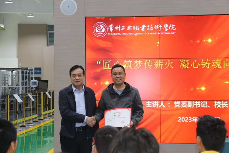 2005到2025,那是程刚深耕教坛20年的时间差;0.5mm到0.1mm,那是程刚丈量匠心的精度差。今年45岁的程刚身上有着很多“标签”——“全能型教师”“技能大师”“高级技师”“全国技术能手”“江苏省五一劳动奖章获得者”“江苏轻工工匠”……从教20年来,他由一名普通教师蜕变成数控技术专业带头人,带领青年团队在教科研一线攻坚克难,参与技术改造项目10多个,攻克重点技术难题3个。由他和团队共同研发的高精准便携式线束端子检测技术和智能型线束拉力检测技术,更是领跑华夏,达到了国内先进水平。