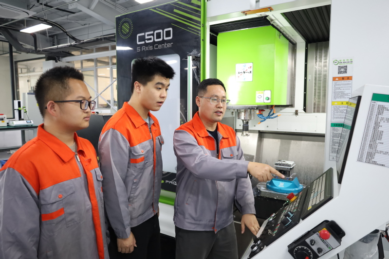 程刚深知,教学改革不仅仅是教学方法的变革,更是教育理念的更新。他和团队深入剖析传统教学模式的弊端,结合中德胡格教学改革的理念,研发出一套“项目载体+模块课程”的梯度教学模式——一年级学手动冲压机制作,二年级学做自动分拣机,而到了三年级,学生们则要挑战智能钻孔机的制作。“这种教学模式,让学生在做中学、学中做、学做一体,促使他们在解决问题中得到成长,锻炼创新思维和动手能力。”