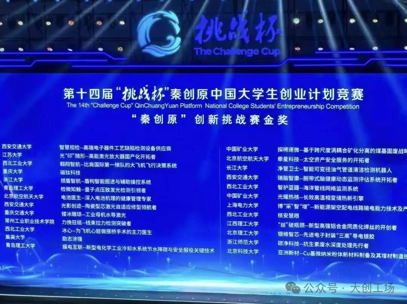 从校赛到省赛,最后进军国赛,张伟业团队如同项目名一般“力挽狂澜”,势如破竹,从全国2700余所高校300多万名参赛者中杀出重围,最终斩获“秦创原”创新挑战专项赛全国金奖,实现了我校在该项赛事上的历史性突破。获奖名单上,在众多“双一流”本科高校的环绕之中,“常州工业职业技术学院”的校名与浙江大学、西安交通大学等名校比肩而立,更显耀眼夺目。