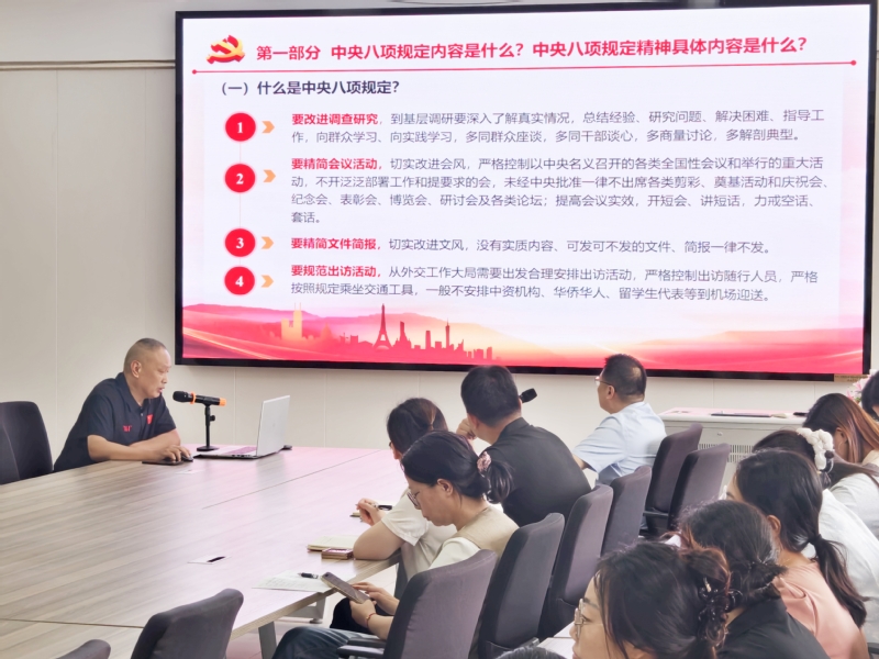 6月23日,党委委员、副校长檀祝平以《锲而不舍落实中央八项规定精神》为题,为基础教学部与体育工作部党总支、旅游与康养学院党总支全体党员讲授专题党课。他从中央八项规定的主要内容切入,阐述了党的十八大以来党中央深入贯彻中央八项规定精神的实践历程,列举了多起违反中央八项规定的典型案例。他强调,作为高校教师党员,肩负着立德树人的重要使命,更应在落实中央八项规定精神上走在前、作表率,以优良党风带动教风学风,以清正廉洁的作风涵养校园育人环境。
