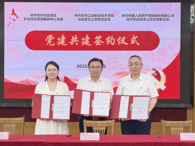 7月3日,我校马克思主义学院党总支、中国人民财产保险武进支公司党支部、武进区农业综合管理服务中心党支部联合举行党建共建签约仪式。三方党组织负责人出席活动。