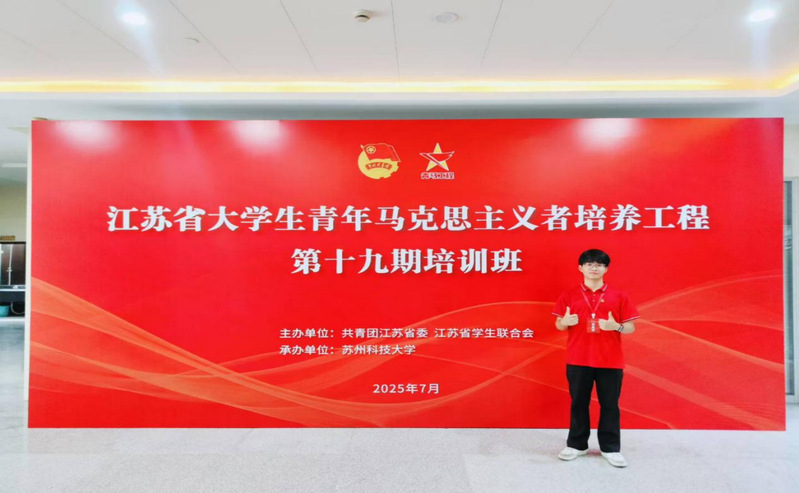 近日,我校团学骨干、24电气自动化335班阙少杰同学通过遴选,赴苏州参加由共青团江苏省委、江苏省学生联合会举办的江苏省大学生青年马克思主义者培养工程(简称“青马工程”)第十九期培训班。