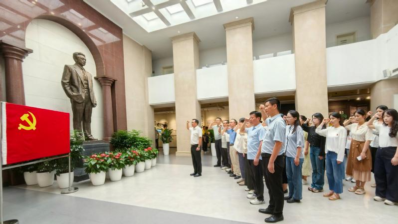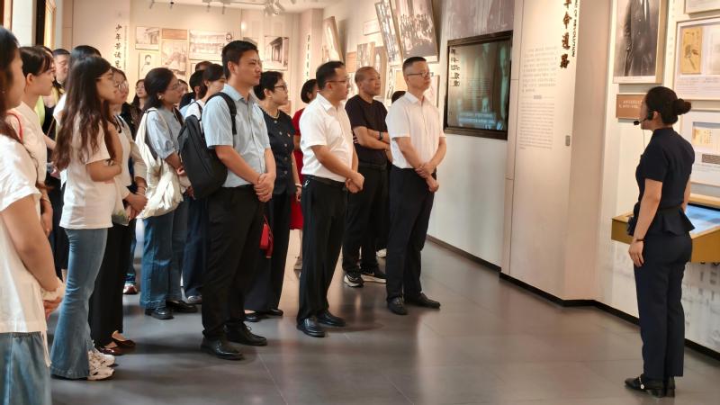 在纪念馆大厅中央,全体党员教师面向党旗,高举右拳,重温入党誓词,与历史对话、与初心共鸣。马克思主义学院党总支副书记、副院长李飞在领誓后表示:“宣誓不仅是仪式,更是对信仰的再坚定、对使命的再确认。我们要将革命先烈的精神转化为立德树人的实际行动。”
