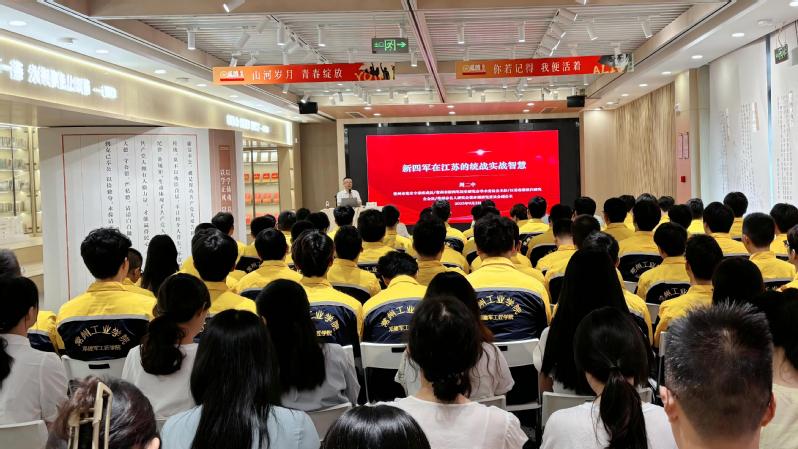 在纪念馆怀霜社报告厅,常州市新四军历史研究会学术委员会主任周二中作《新四军在江苏的统战实战智慧》专题讲座,通过翔实史料与生动案例,深入剖析了新四军在常州、泰州、盐城等地团结各界力量共同抗日的统战实践,充分展现了中国共产党在复杂局势中的政治智慧与战略远见。