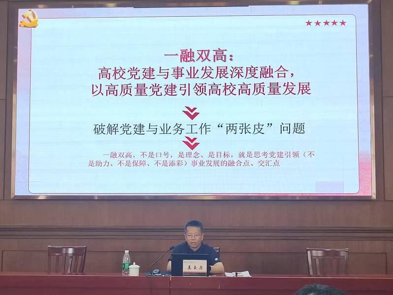 8月7日,我校举行新时代高校党建“双创”工作培训会,特邀东北大学党委常委、党委办公室主任姜玉原担任主讲人。我校党委委员、副校长檀祝平出席会议,会议由党委委员、组织部部长王迎春主持。各党总支书记、支部书记、组织员参会。