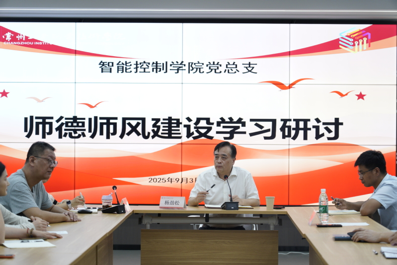 在智能控制学院,杨劲松领学了习近平总书记在纪念中国人民抗日战争暨世界反法西斯战争胜利80周年大会上的重要讲话精神,深刻阐释了教育工作要以为党育人、为国育才为核心,通过课程思政改革,把爱国情怀、奋斗精神转化为学生成长的精神动力。他要求在座教师既要深耕专业领域,紧跟智能控制行业前沿,努力提升教学能力,又要以自身的责任担当感染学生,培养出“能干事、肯担当、有情怀”的高素质人才。同时,他还深入剖析违反师德师风典型案例,为在座教师敲响警钟。