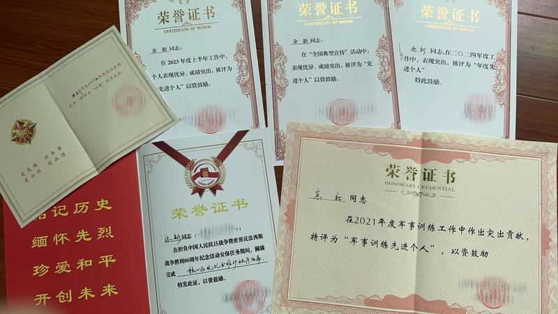 余新的努力和付出得到了部队的充分肯定和认可。2022年,他荣获“全国典型宣传活动先进个人”;2023年,他被表彰为“四有优秀个人”,所在班荣立集体三等功;2024年,所在中队荣立集体三等功;2025年,他再次被表彰为“四有优秀个人”。余新用信念护航着国家安全,2024年5月,他加入中国共产党,成为一名中共党员,让这份守护的初心在信仰的指引下更加坚定。