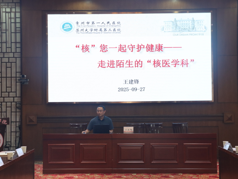 活动现场还邀请了常州一院核医学科副主任王建锋开展《“核”您一起守护健康——走进陌生的“核医学科”》专题讲座。王建锋结合临床应用情况生动讲解了核医学的概念、应用范围和实践场景,指出了医工结合、人工智能是未来的发展趋势。常州一院坚持数年为我校教职工提供血压测量、体检报告解读等一对一健康惠民服务,是“党建引领、资源共享、服务联动”理念的生动实践。