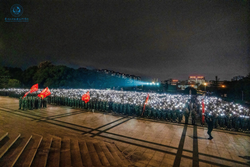 出征仪式前,全体2025级军训学员在手机电筒组成光的海洋中,用一首铿锵有力的《强军战歌》为自己壮行。