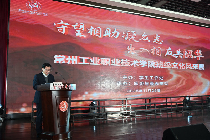 11月26日,由学工处主办、旅游与康养学院承办的2025年“守望相助凝众志 出入相友共韶华”班级文化风采展演在我校举行,全校900余名师生共同见证这场班级风采。副校长檀祝平出席活动并致辞。