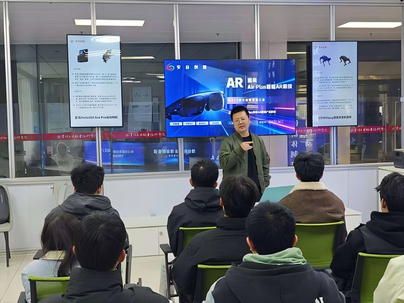 “人工智能认知之旅”专题活动是学校“第二课堂”科创实践生态中“沉浸体验”与“前沿引领”设计理念的生动诠释。活动中,来自安谷科技公司的产品经理系统讲解了哈浮飞行相机、雷鸟智能眼镜的创新设计与技术理念,并设置了实机操作环节,让同学们得以亲手触碰、近距离感知智能科技的应用魅力,改变了技术“只可远观”的距离感。