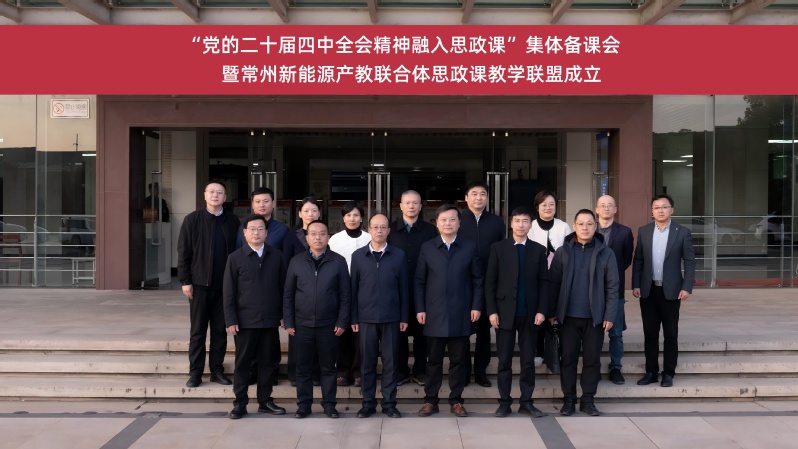 12月9日,“党的二十届四中全会精神融入思政课”集体备课会暨常州新能源产教联合体思政课教学联盟成立仪式在我校举行。会议聚焦推动党的创新理论有机融入“习近平新时代中国特色社会主义思想概论”课程教学,深入探讨了产教融合背景下协同育人新机制。我校校长王志华、党委副书记吴丽云、副校长姚庆文、纪委书记朱晓华、副校长檀祝平、副校长蒋正炎等校领导出席会议并作重要指导。来自常州新能源产教联合体成员院校的思政课教学负责人、教师代表及我校马克思主义学院全体教师齐聚一堂,共商思政课改革创新大计,共绘协同育人新蓝图。会议由马克思主义学院副院长李飞主持。