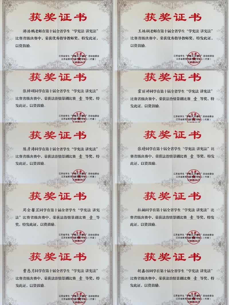 此次获奖是我校继今年10月荣获江苏省“学宪法 讲宪法”演讲比赛二等奖后,在法治教育实践中取得的又一佳绩。这既是对我校师生法治素养与综合能力的充分肯定,也彰显了学校在推进依法治校、法治育人、创新思政教育模式方面的扎实成效。