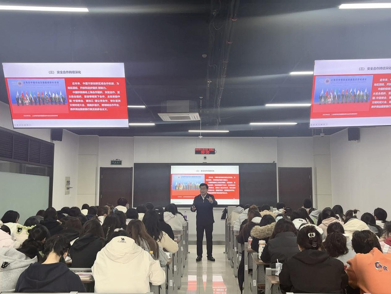 11月12日,党委委员、副校长檀祝平走进2024级幼儿专业课堂,以“中国周边形势与构建周边命运共同体”为主题讲授专题思政课。檀祝平以“睦邻友好”与“以邻为壑”的对比为导引,系统阐述了新时代中国周边外交取得的历史性成就、面临的复杂形势与未来战略方向,生动诠释了中国坚持“亲诚惠容”理念、推动构建周边命运共同体的深刻内涵与坚实行动。檀祝平强调,中国始终是世界和平的建设者、全球发展的贡献者,这充分彰显了负责任大国的担当与推动构建人类命运共同体的坚定决心。他勉励学生要拓宽国际视野、厚植家国情怀,于大局中思考使命,于比较中坚定自信,为时代发展贡献青春智慧。